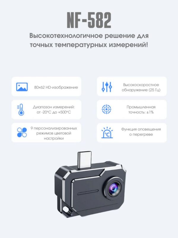 Тепловизор для смартфона NOYAFA NF-582 — это уникальное устройство, которое поможет вам быстро и точно измерять температуру различных объектов.