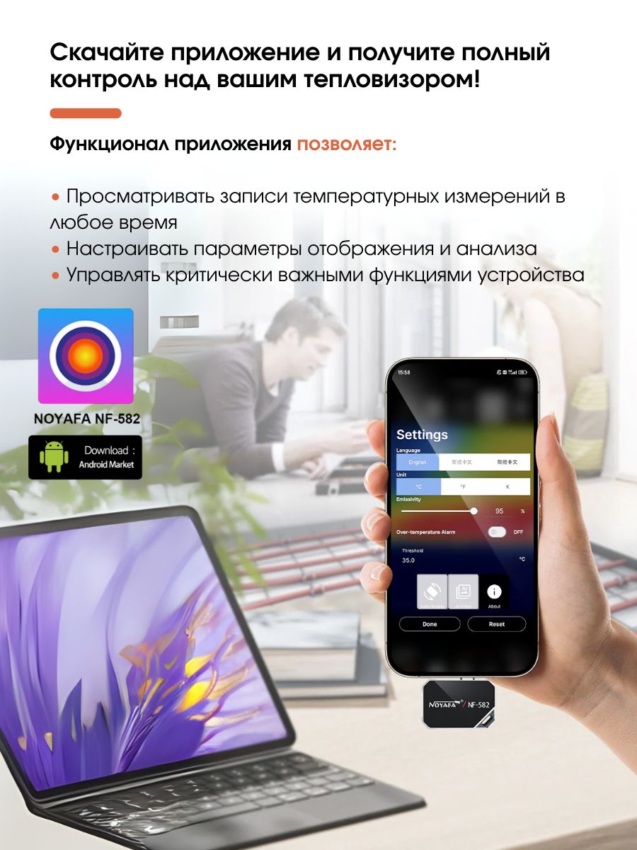 Тепловизор для смартфона NOYAFA NF-582 — это уникальное устройство, которое поможет вам быстро и точно измерять температуру различных объектов.